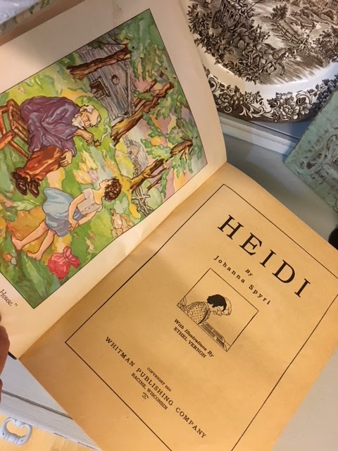 Our daughter Jessica just gave me a vintage copy of the book, "Heidi", that she found while vacationing on the Oregon coast!
